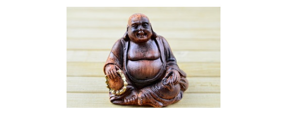 Внезапно раздался тихий звон, и крышка сундучка сама откинулась. На дне сундука лежала сияющая золотая фигурка: толстый улыбающийся человек с большим животом, со скрещенными на груди руками, сидящий на скрещенных ногах. Шею человека обвивала золотая змейка с глазами из красного камня. В свете свечей глаза змейки таинственно поблёскивали.