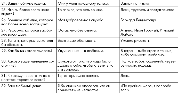 Не сомневаюсь, что некоторые ответы Пруста показались вам странными. Не надо забывать: ему было всего двадцать лет, происходило это сто двадцать с лишним лет назад и, главное, Пруст был и остается фигурой чрезвычайно загадочной.