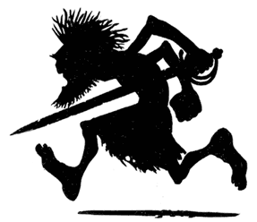 – В – эт’ вертел! Мы тыкс мечи зовём. И… вот я ща как дам те люлей, бушь знать, как мя вертелом тычить! – И третий Фигль набросился с кулаками на своего соседа.
