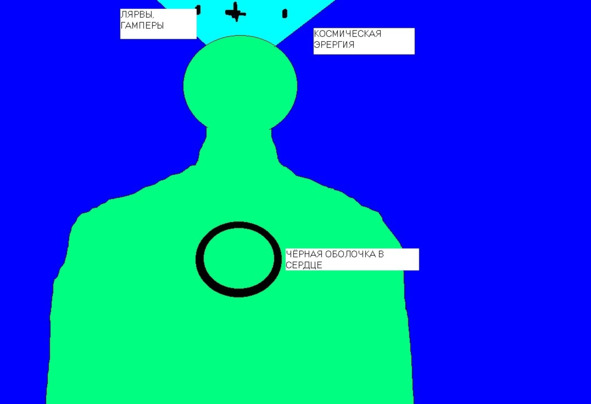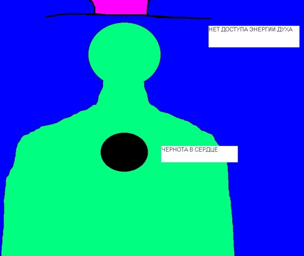 Дорогой брат, посмотри внимательно на следующий рисунок 12. В чём твоя проблема? У тебя в сердце – чёрная энергия, очень много империла. Требуется большое время, чтобы очистить твоё сердце от этого империла. Дело в том, что иначе энергия Духа не проходит в тебя, несмотря на то, что ты в иные времена многое что осознаёшь и работаешь над собой.