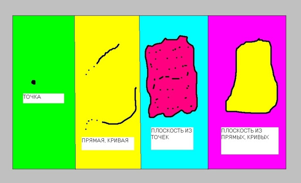 • Точка начинает расширяться, и из неё постепенно в пространстве рождается плоскость.