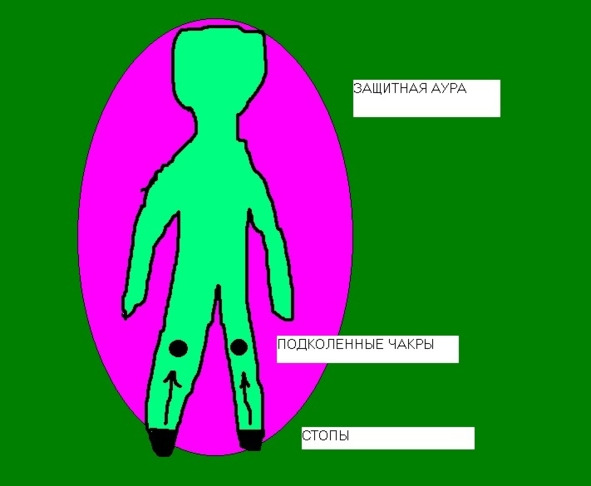 На рис. 10 ты схематично видишь то, что видим и Мы, Мастера и Владыки, просматривающие регулярно ваши «тонкие» тела. Положительные моменты в том, что у тебя очень сильная защита, и это тоже работа над собой и Наша помощь. Обрати внимание на свои стопы. Там есть энергетические пробки или заторы, которые перекрывают твою духовную связь с землёй. Возможно, иногда ты чувствуешь боль или тяжесть в ногах. Поработай над этим, иначе в будущем это может привести к серьёзным проблемам со здоровьем. Обрати внимание также на область подколенных чакр, как спереди, но, в основном, сзади.