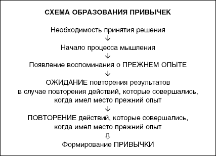 Ниже приведена схема описанной выше последовательности действий, ведущих к образованию привычек.