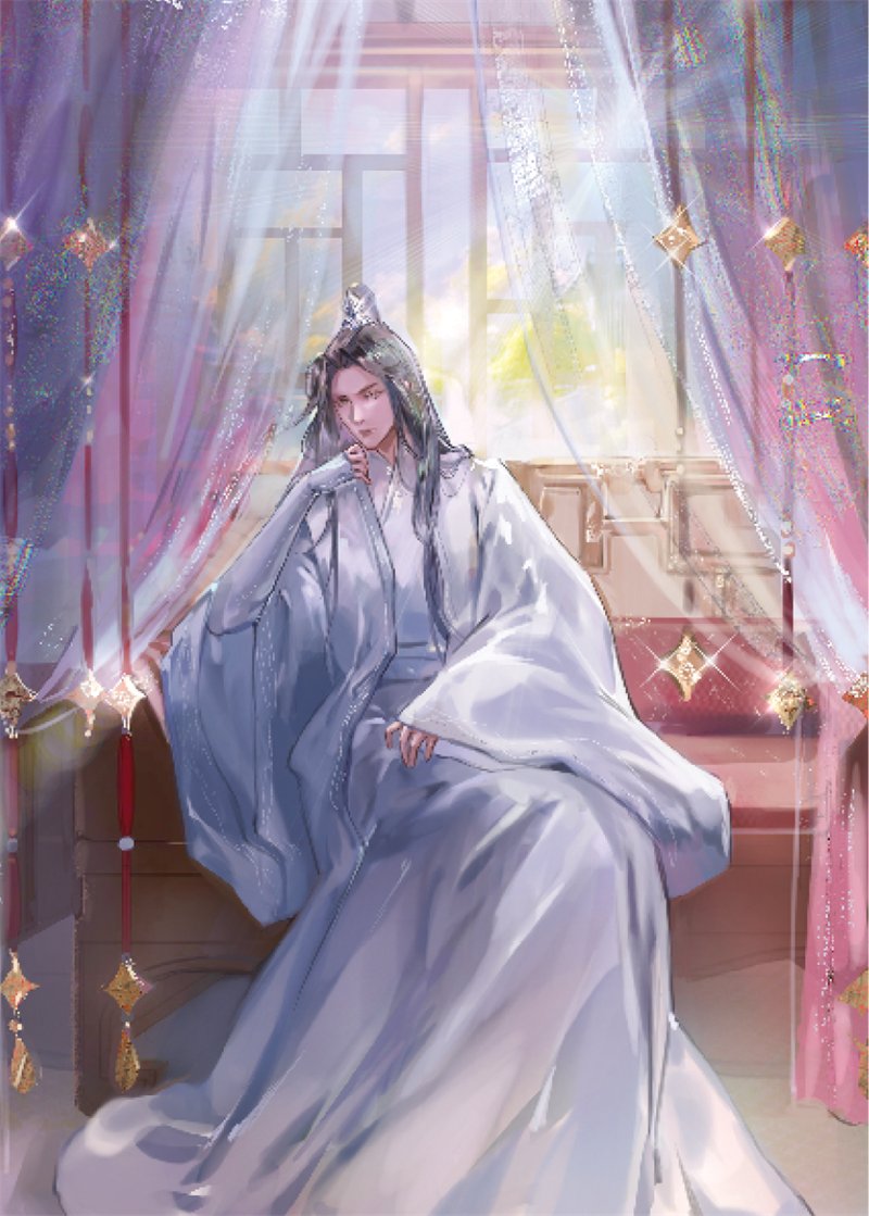 Янь Чжэнмин обладал редкой красотой и, несмотря на юный возраст, выглядел крайне впечатляюще. Одетый в белоснежный атласный халат, расшитый невидимыми узорами, переливающимися на свету, он расслабленно откинулся на спинку резного стула и подпер рукой подбородок. Его веки были слегка опущены, а волосы струились по плечам, словно разлитые по бумаге чернила.