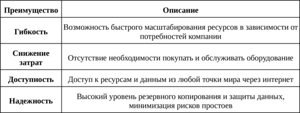 Таблица: Преимущества облачных технологий
