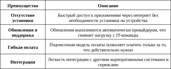 Таблица: Преимущества SaaS-решений