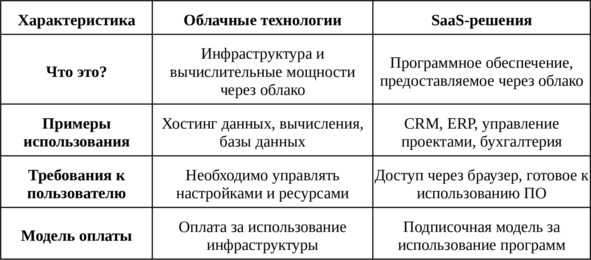 Хотя облачные технологии и SaaS-решения часто упоминаются вместе, важно понимать разницу между ними: