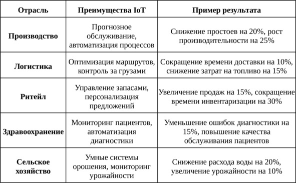 Таблица: преимущества IoT для бизнеса