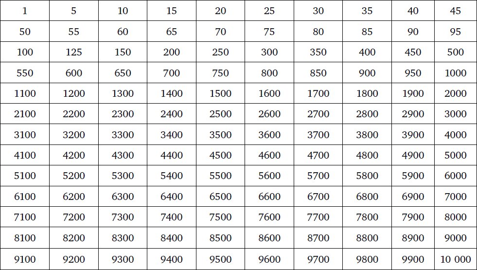 Ниже вы найдете две таблицы с цифрами по возрастанию для измерения психологического денежного комфорта. Эти таблицы можно использовать: