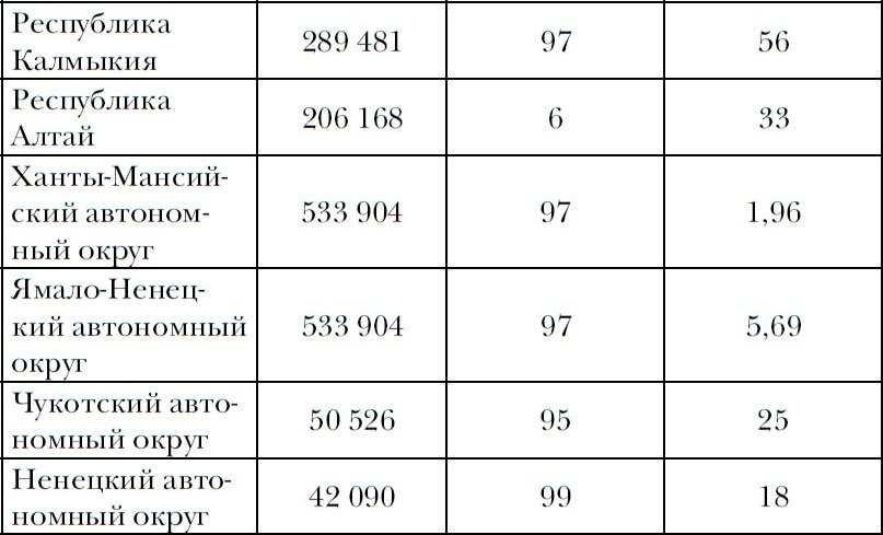 Данные, приводимые в таблице, свидетельствуют о серьезных различиях в численности лиц, принадлежащих к «титульной» нации, в общем населении регионов. Эти различия носят этнический характер – проведение общероссийской переписи основывалось на самоидентификации опрошенных. Лишь незначительное их число отказалось причислять себя к той или иной национальной группе. В пользу этнического характера большинства республик свидетельствует и значительное число лиц, причисляющих себя к «титульным» нациям, но проживающим в других регионах. Небольшой процент «титульного» населения главным образом в автономных округах, а в Еврейской автономной области он меньше 1 %.
