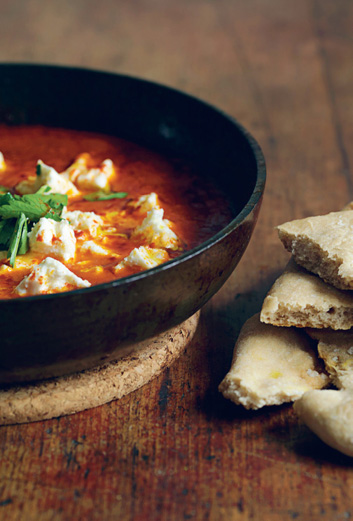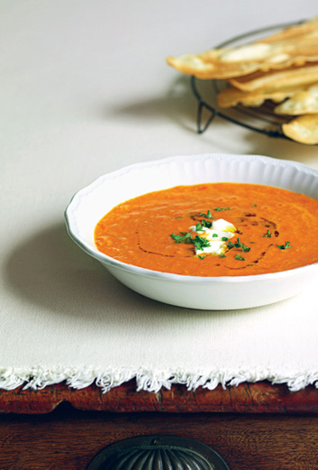 PLATE 3: Chickpea and tomato ten-minute soup; Notepaper bread