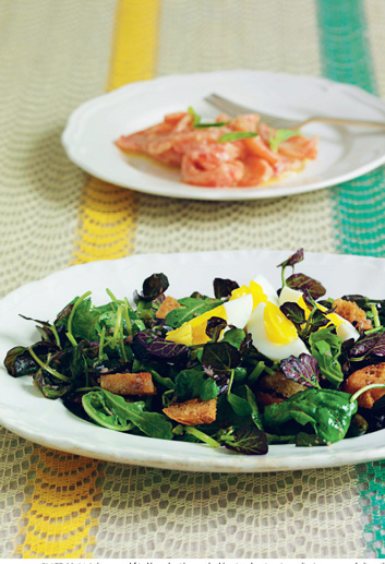PLATE 11: Léa’s leaves and fried bread, with a smoked-herring dressing; Jacqueline’s tomato and olive oil