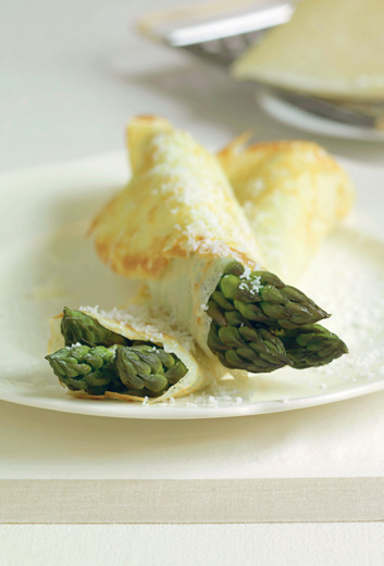 PLATE 23: Crepe-wrapped asparagus with grated cheese