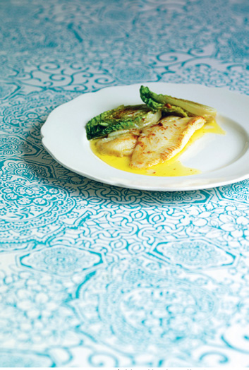 PLATE 13: Pan-fried plaice with lettuce hearts and lemon