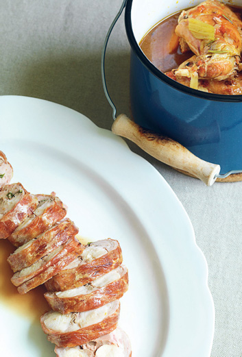 PLATE 26: Roast rabbit saddle, stuffed with liver and kidneys; Slow-cooked rabbit