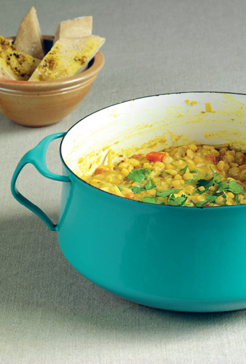 PLATE 4: Spiced butter and yellow split peas; Instant soft flatbreads
