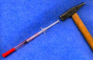 При быстром сжатии, температура в пузырьках воздуха в жидких ВВ или промежутках между кристаллами спрессованного ВВ выше, поскольку теплоемкость воздуха меньше, чем у окружающего их конденсированного ВВ. Для опыта, иллюстрирующего это явление, понадобится капля эфира, старый шприц и молоток. Наберем каплю эфира в шприц, а затем ударим молотком по поршню (поберечь пальцы!) – и увидим фиолетовую вспышку его паров. Говорят, что таким способом американские солдаты добывали огонь в джунглях Вьетнама. Понятно, эфира у них не было, но нагрев воздуха приводил к тлению кусочка высушенного угля. Правда, как ни старался автор, повторить этот трюк ему не удалось