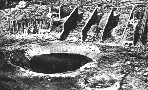 Последствия взрыва на заводе минеральных удобрений в германском Оппау. На фоне разрушенных цехов – воронка длиной 165 м, глубиной 19 м и шириной 95 м