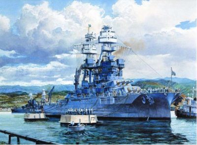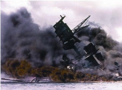 Американский линкор «Аризона»: на написанной перед войной картине и снятый любительской камерой 7 декабря 1941 г. в Пёрл-Харборе