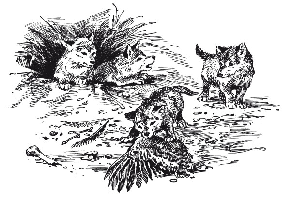 Загонщики нажимали всё ближе и ближе. Старая волчица потеряла волчий смысл и, ткнувшись туда-сюда, как придётся, нашла себе выход и в самых воротцах была встречена выстрелом в голову всего в десятке шагов от охотника.