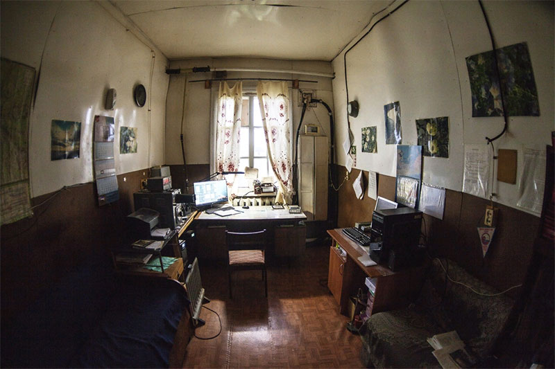 Я пишу эти строки, сидя в тесной комнатушке здания метеорубки. Вокруг на шатких столах, на потрескавшихся стенах, на скрипучем полу нашли свое место угловатые монументальные электроприборы советских времен: тумблеры, рубильники, телетайпы, рации. В уголке на продолговатой тумбочке приютилась печатная машинка.