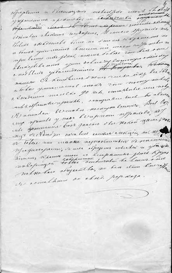 Конечно, и здесь, и там можно встретить много исключений, но они необходимо должны быть, потому что дурные начала слишком глубоко пустили свои корни и зло ‹нрзб.› десятками лет, не может быть, конечно, уничтожено быстро. [Кляксы или жирные пятна, невозможно прочесть.]