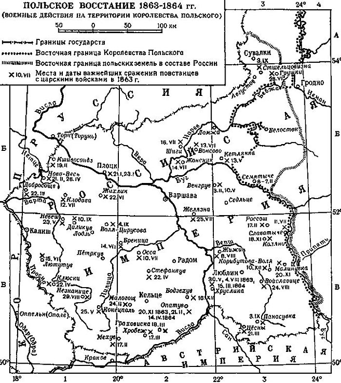 Карта военных действий во время Польского восстания 1863–1864 гг.
