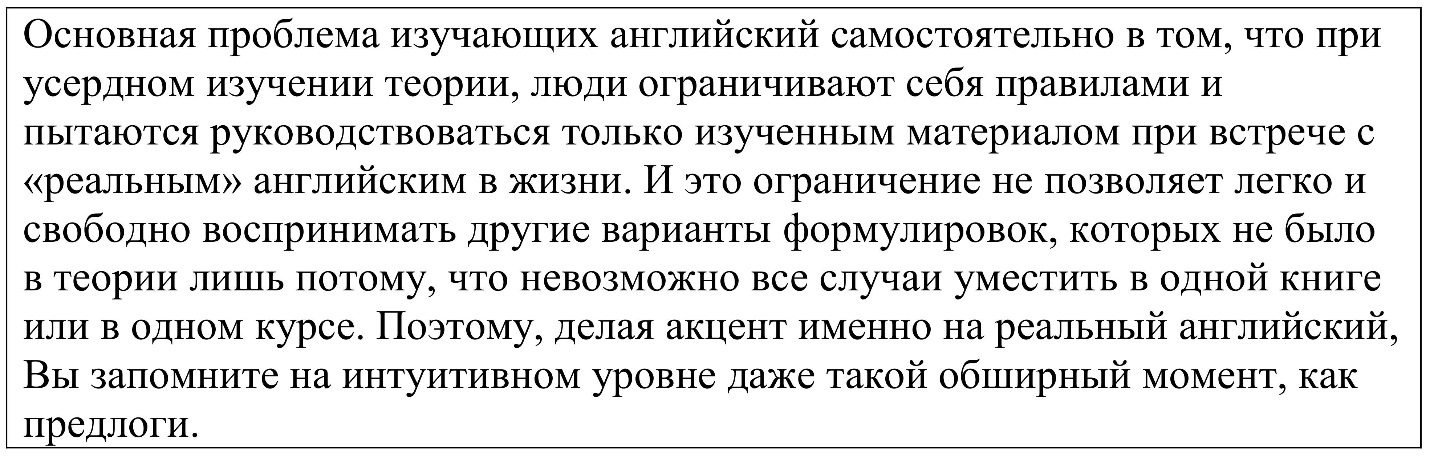 Но Вам нужно, в первую очередь, понять основной и незыблемый принцип, которого будет вполне достаточно для эффективного и легкого взаимодействия с английским.