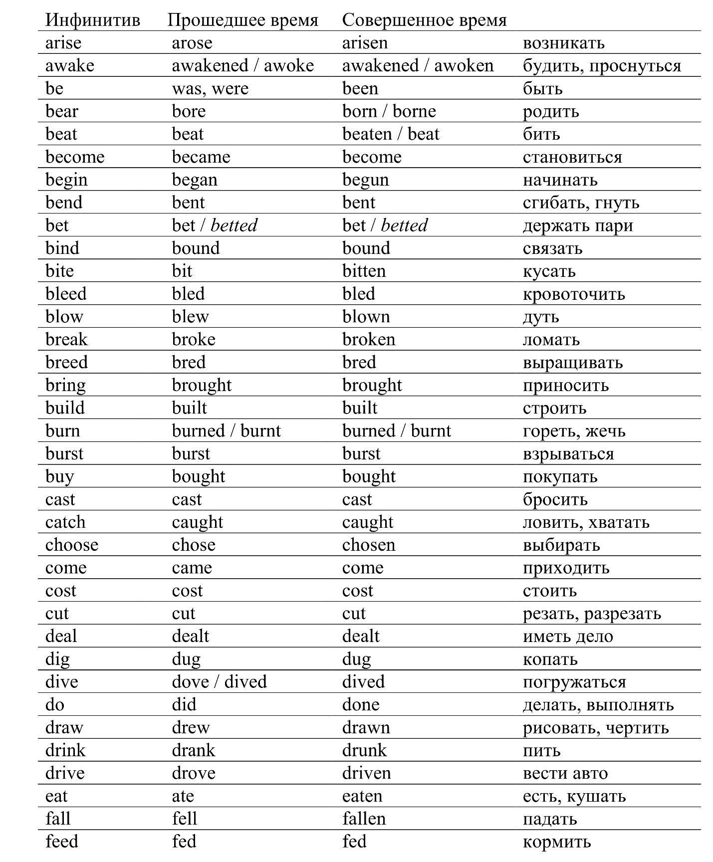 Список таких глаголов со всеми случаями их употребления достаточно велик, поэтому мы предлагаем Вам запомнить основные, часто употребляемые глаголы из практики.