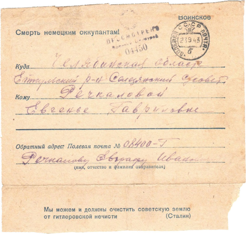 Полевая почта – Южный Урал: Еткульский район (письма с фронта 1941-1945 гг.)