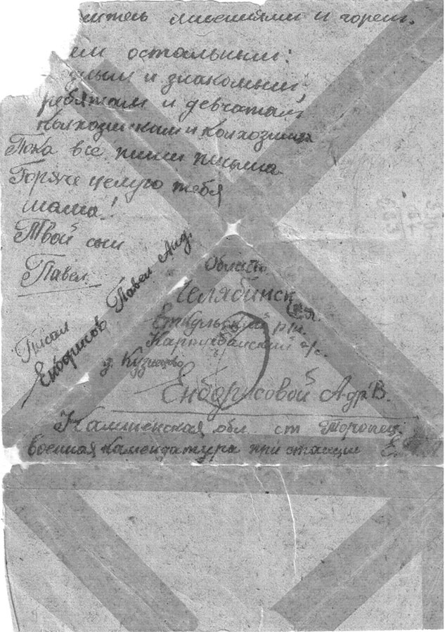 Вздравствуй дорогая мама! Шлю я тебе свой горячий сыновский привет! И сообщаю о том что я пока нахожусь в госпитале рана зажила. Мама письма пишу редко так как нет бумаги. Но уже из госпиталя за месяц я написал 8 штук не знаю получила или нет. Но все же мама ты обо мне знаешь а я об тебе не знаю как ты живешь и поэтому я об тебе думаю в училище я об тебе не так думал так как получал письма. Здесь думаю день и ночь. Больше писать нечего. Горячо целую тебя дорогая мама! Передавай всем родным и знакомым мой гвардейский привет! Твой сын Павел.