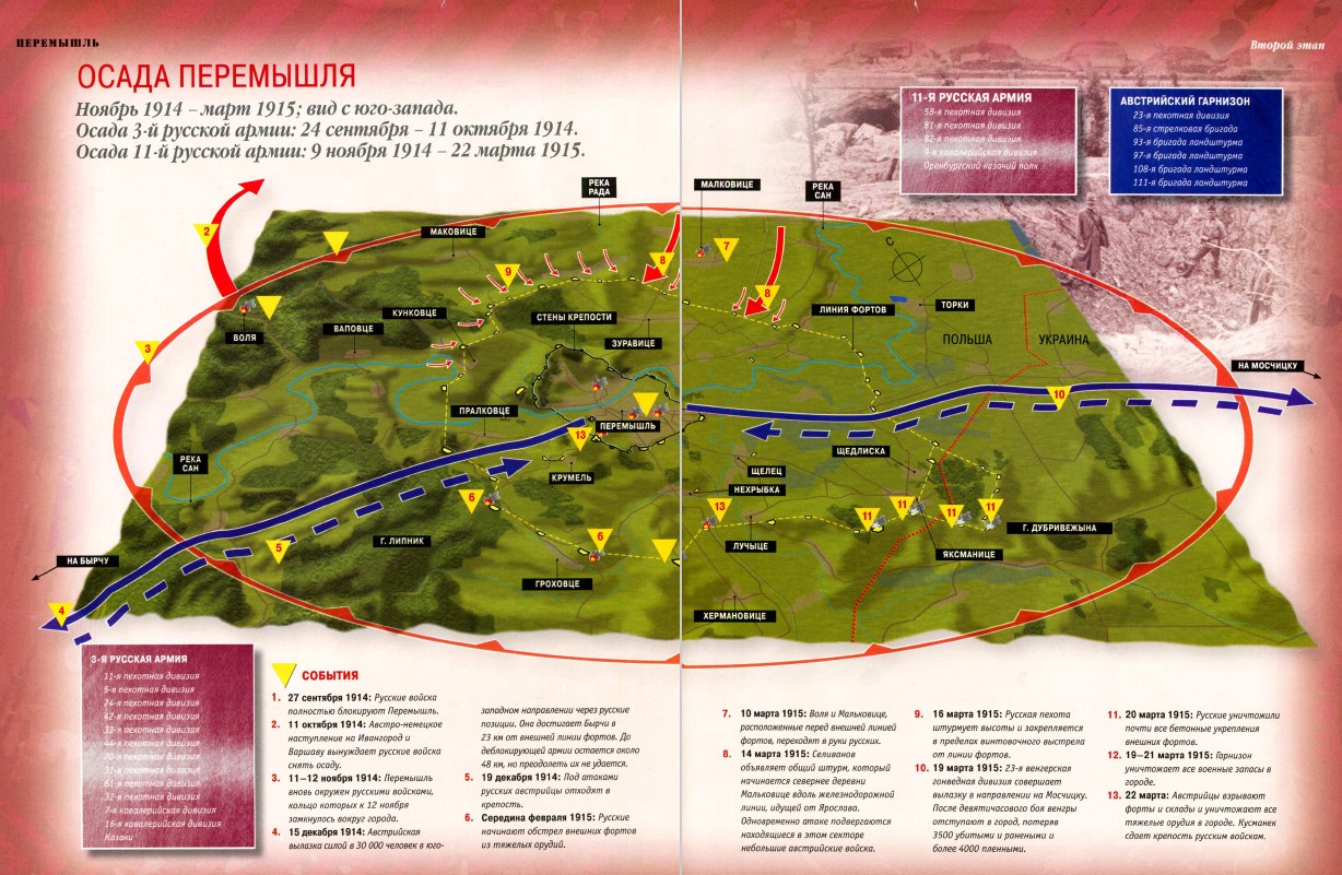Рис.1 Карта осады крепости Перемышль. Источник: 11. 100 битв, которые изменили мир. №42. Перемышль 1914-1915.