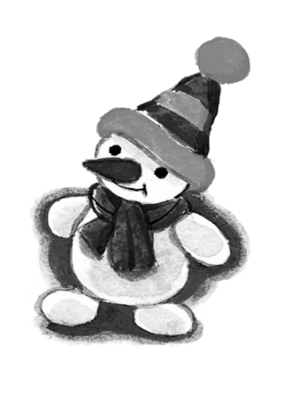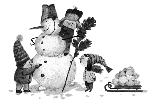 СнеговикДедушка Мороз умел рисовать потрясающие узоры… на окнах своего терема, разумеется. И скульптор он был отменный. Припорошит деревья или кусты снегом, и вот уже причудливые фигуры застыли в белоснежном лесу. То зайчик у него получится, то лисичка, гляди: насторожилась, хвост по ветру, как живая! И птички-синички выходили у него похожими. А вот с людьми вечно незадача приключалась: как кусты да ёлки ни припорашивает, а всё не то! Значит, лепить надо!
