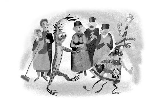 – Папа идёт и покупает новогоднюю ёлку, – сказал малыш. – Потом мама украшает дерево игрушками и конфетами, и мы все вместе поём и танцуем вокруг дерева.