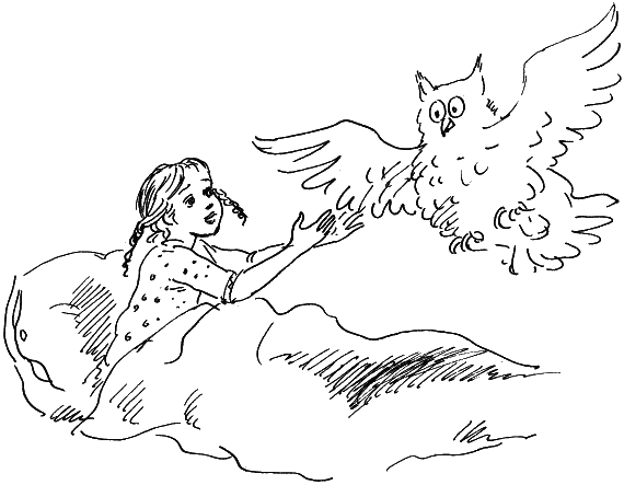 На этот раз Облако было похоже на большущего белого филина с двумя широкими крыльями. Несколько белых перьев, кружась, упали на пол, пока Облако протискивалось в слишком узкое для него окошко.