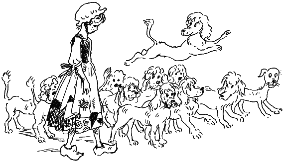 Одиннадцать пуделей и дворняжка резво бежали по улице, деловито обнюхивая тумбы и заборы. Лоскутик с убитым видом плелась за ними.