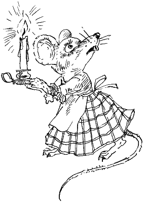 – Опять эта мышь! – покачала головой тётушка Пивная Кружка. – Так и шныряет повсюду. Хотя, по правде сказать, в жизни не видела такой славной мышки. Спинка просто бархатная. А ушки словно сшиты из серого шёлка, да ещё на розовой подкладке.