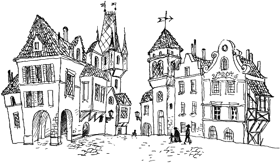Было ранее утро. Встало солнце, и все дома в городе с одного бока стали тёплыми и розовыми. Острый шпиль над башней с часами вспыхнул и засветился, и маленькое круглое облако опустилось на него, как золотое кольцо.