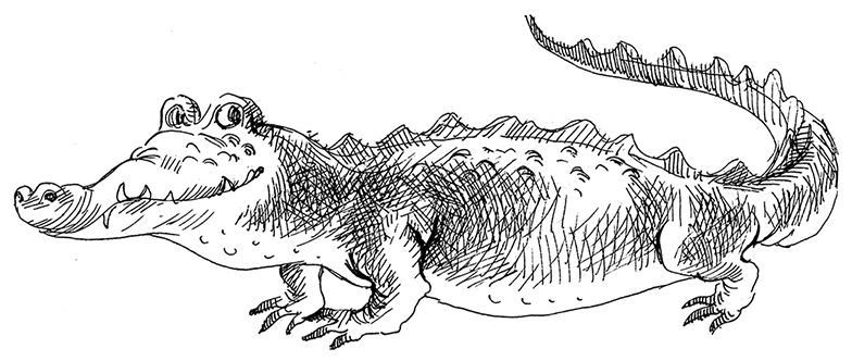 В ответ неодобрительно забулькал крокодил, по самые глаза лежавший в воде.