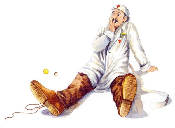– О-о-о… – простонал Детский Доктор и сел на пол рядом со стулом. – Какой ужас! Если он съест хоть одну конфетку… Ведь все лётчики такие смелые. Они даже слишком смелые. Их, наоборот, учат осторожности… О-о-о…