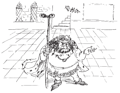 В зал, часто переступая кривыми ножками, вошёл скрюченный карлик. У него были подслеповатые тусклые глаза под косматыми нависшими бровями. В руке он держал сучковатый, длинный не по росту посох. Посох был сделан из простого дерева, но на нём сверкали два зорких пронзительных глаза. Эти глаза могли видеть всё, что творится за много вёрст кругом.
