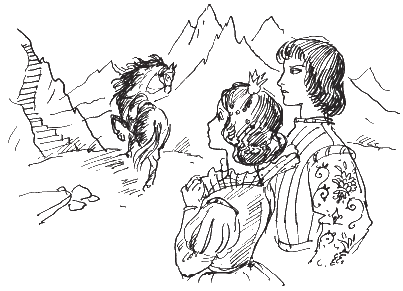– Вижу, ты умна и послушна, – кивнула старуха. – За это я дам тебе чудесного чёрного коня. Сто одна тропинка ведёт к Ледяной Скале. Мой чёрный конь покажет вам самый короткий путь. Но береги его, это моё единственное сокровище.