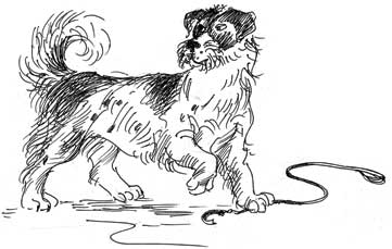 Пёс некоторое время стоял в полном остолбенении, широко расставив свои мощные тяжёлые лапы. Потом он осторожно оглядел себя через плечо одним глазом. Зарычал густым басом и, наклонив голову, прислушался к своему новому голосу.
