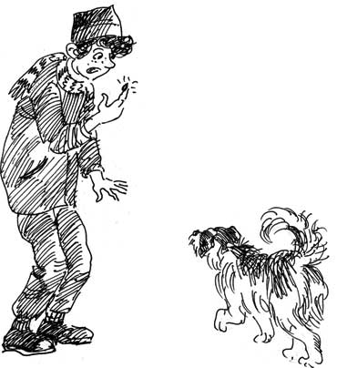 Милиционер бросился между Гришкой и псом. Но пёс уже равнодушно отвернулся от Гришки, на прощание дружелюбно помахал хвостом и не спеша отправился в тёмный переулок.