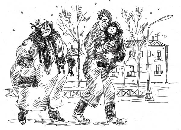 Худой Дядя долго топал ногами, чтобы отряхнуть снег, а Толстая Тётя смотрела на его ноги строгими глазами.