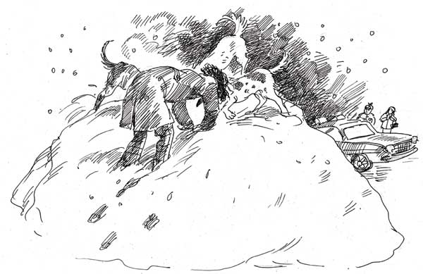 Но тут все собаки бросились к одному сугробу и стали быстро разгребать его своими тренированными лапами.