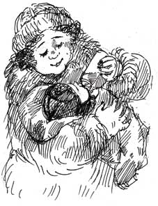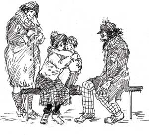 – Нет, здесь нужна женская рука, а не милиционерская! – бормотала Толстая Тётя. – Бедный ребёнок! Он не видел в жизни ни ласки, ни внимания. Достаточно посмотреть, во что он одет…