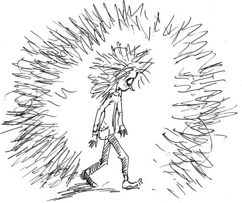 Он был весь словно выгнут из тонкой золотой проволоки. Его прямые волосы торчали в разные стороны, как иглы ежа, а большие уши сильно оттопыривались.