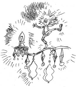 Веснушка прыгал по хрустальным подвескам, каждый его шаг – жгучие искры, вспышки, блески так и сыпались с потолка.