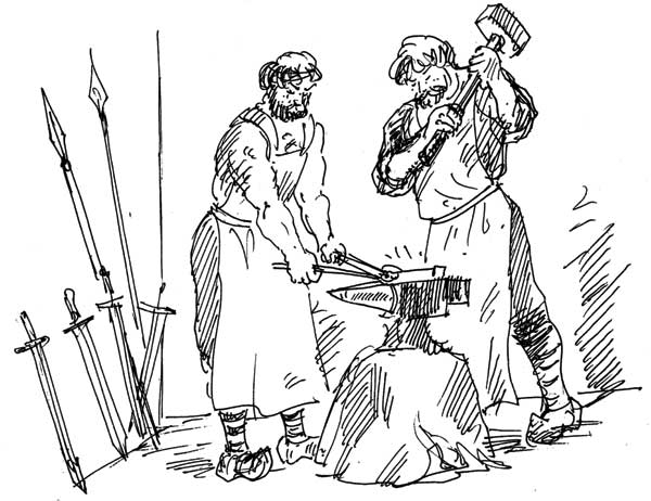 – Ну так слушай, – начал свой рассказ Веснушка. – Вчера все города были ещё маленькие. И вокруг каждого – высокая стена. Девчонки вроде тебя носили длинные юбки. Те, что побогаче, обували шёлковые туфельки, вышитые золотом, а всякая беднота таскала тяжёлые деревянные башмаки. Топ-топ-топ! Так вот. О чём это я? Ах да! Жили в одном городе братья-кузнецы. Когда не было туч на небе, я любил заглядывать к ним в кузницу. Их было двое, и оба рыжие. Красные вихры так и торчали во все стороны. Мне нравилось смотреть, как они работают. Грохот и звон стояли в кузнице. Хвостатые искры разлетались и гасли в тёмных углах. Братья выковывали лёгкие кольчуги и тяжёлые мечи с узорными рукоятками. К ним приходили бедняки с суровыми неулыбчивыми лицами. И каждый незаметно уносил под плащом кто кинжал, кто меч, кто кольчугу.